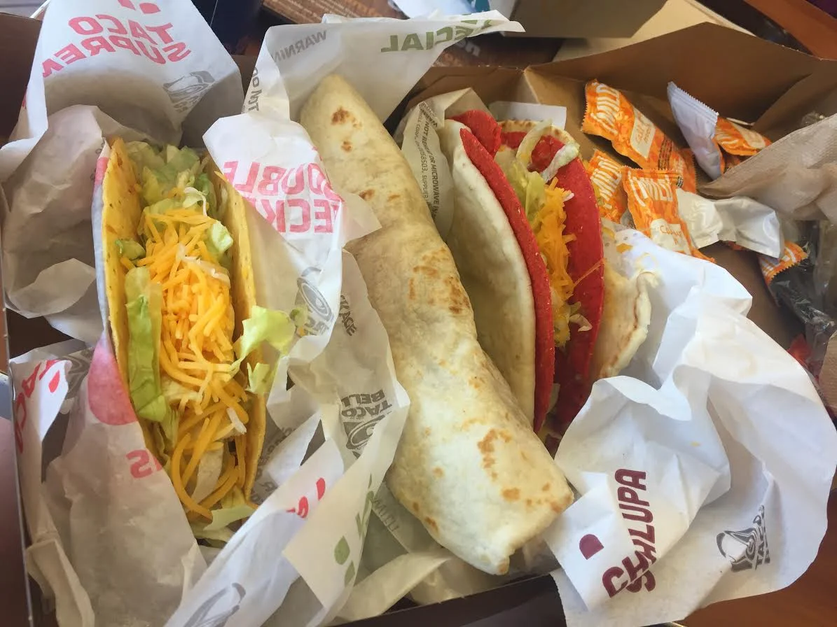 This review is for the Taco Bell at 4526 Las Positas Road in the Plaza 580 Shopping Center, Livermore, CA. I hit this Taco Bell up on the way back to San Francisco the Saturday after our hike. After hiking over 18 miles, I like to think that I worked off enough calories to consume an entire Doritos Cheesy Gordita Crunch Big Box ($5 with drink), and you can't convince me otherwise. The Big Box came with a Cheesy Gordita Crunch, a Burrito Supreme, a Crunchy Taco and a medium drink. My experience at this Taco Bell was quite lovely. The establishment was very clean, the cashier was kind and the sauces were well-stocked and out in the open so I didn't have to embarrass myself by asking for ten packets of mild and hot sauce.